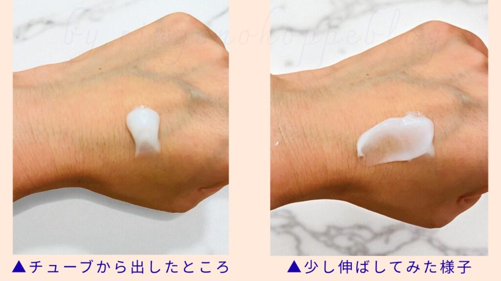 やわらかいテクスチャーで、チューブタイプのボトルからも押し出しやすく、使い勝手は◎。